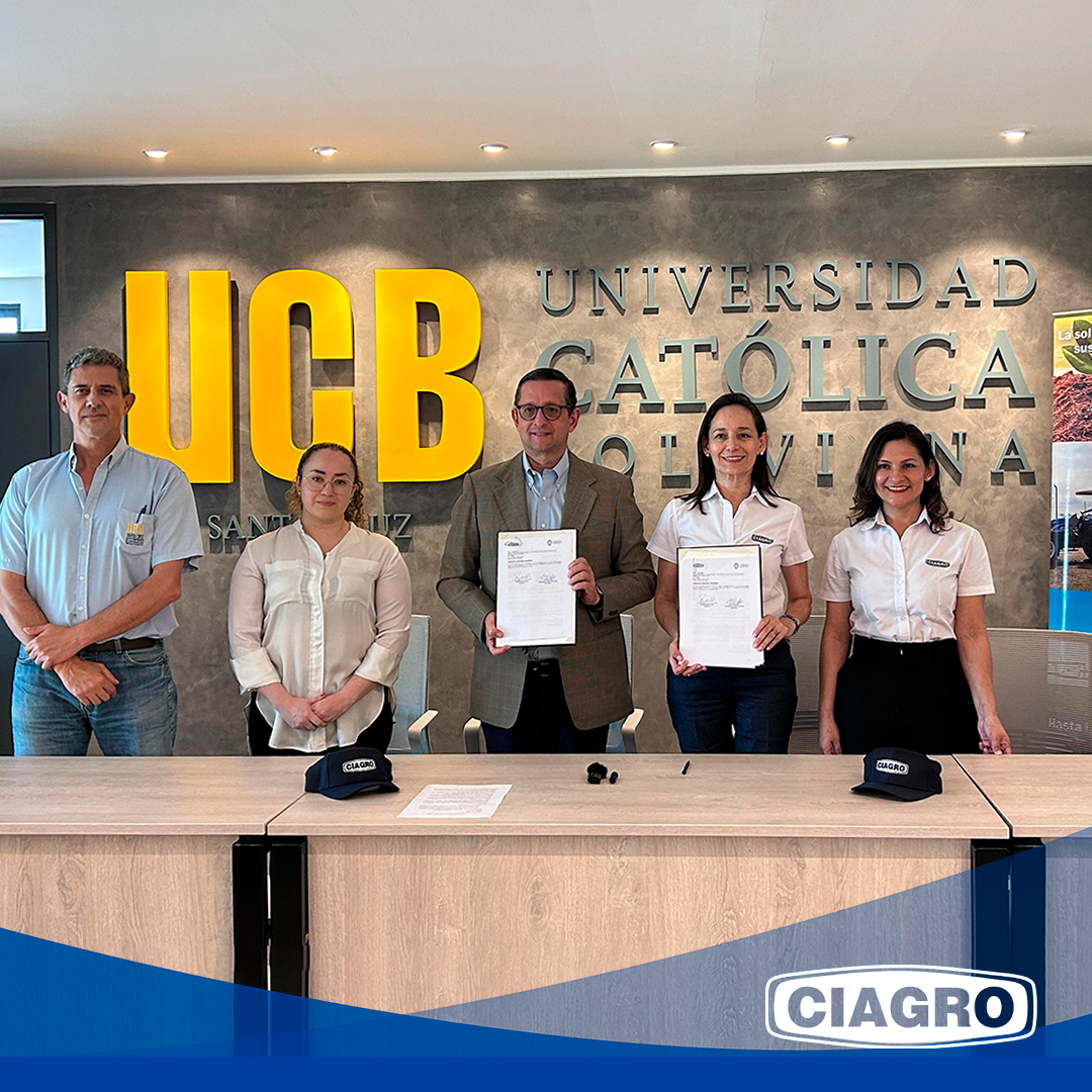 En CIAGRO creemos en el talento joven y en el poder de las alianzas. Estamos orgullosos de consolidar este convenio con la Universidad Católica - UCB Santa Cruz, un paso importante para acercar la academia al sector productivo y seguir impulsando la innovación en el agro del país. Agradecemos a la UCB por confiar en CIAGRO y por abrir las puertas a una generación que transformará el futuro del agro en Bolivia.